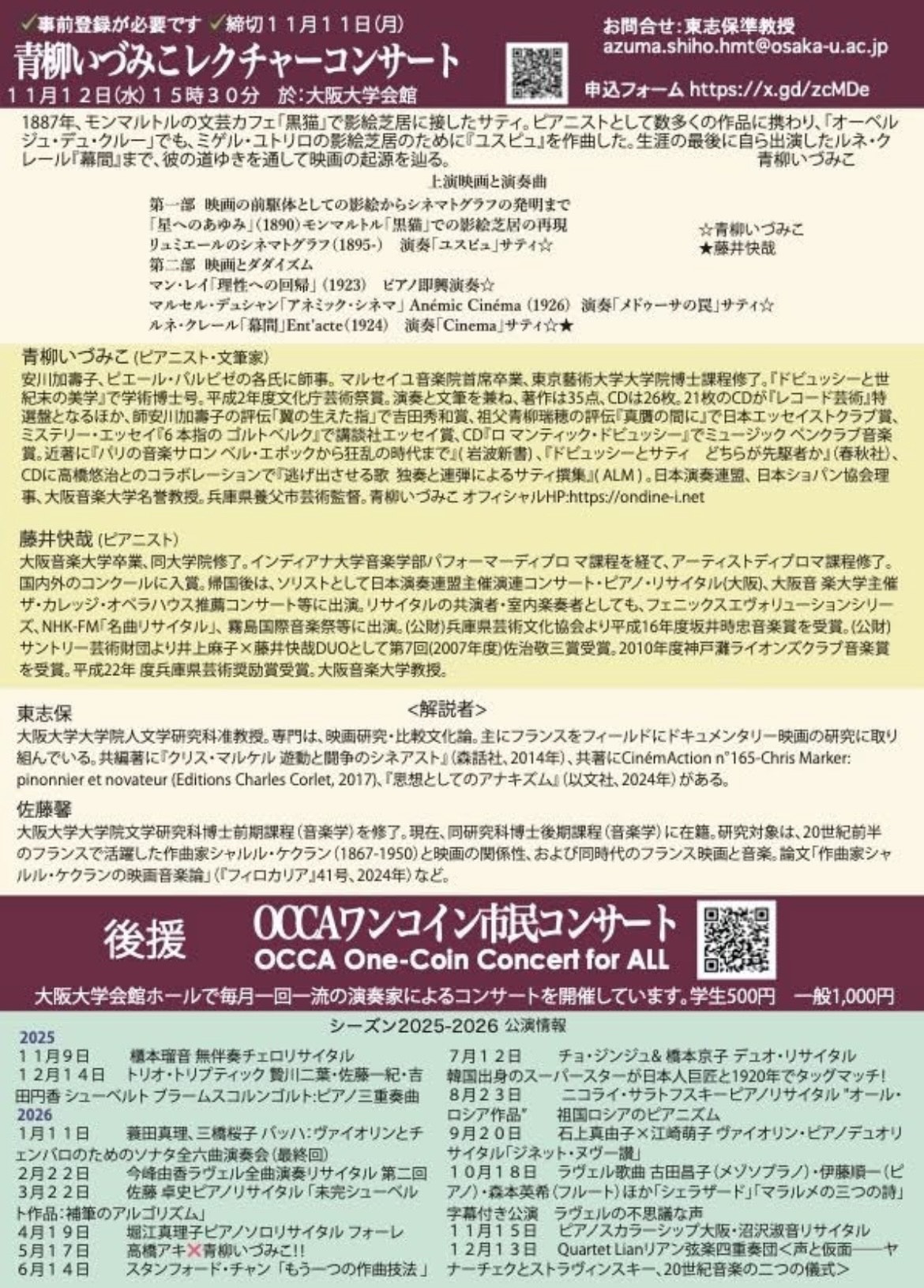 | 日時 | 2025年11月12日(水) 15:00開場、15:30開演(17:30終了) |